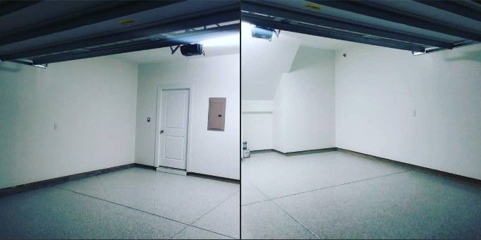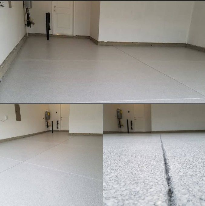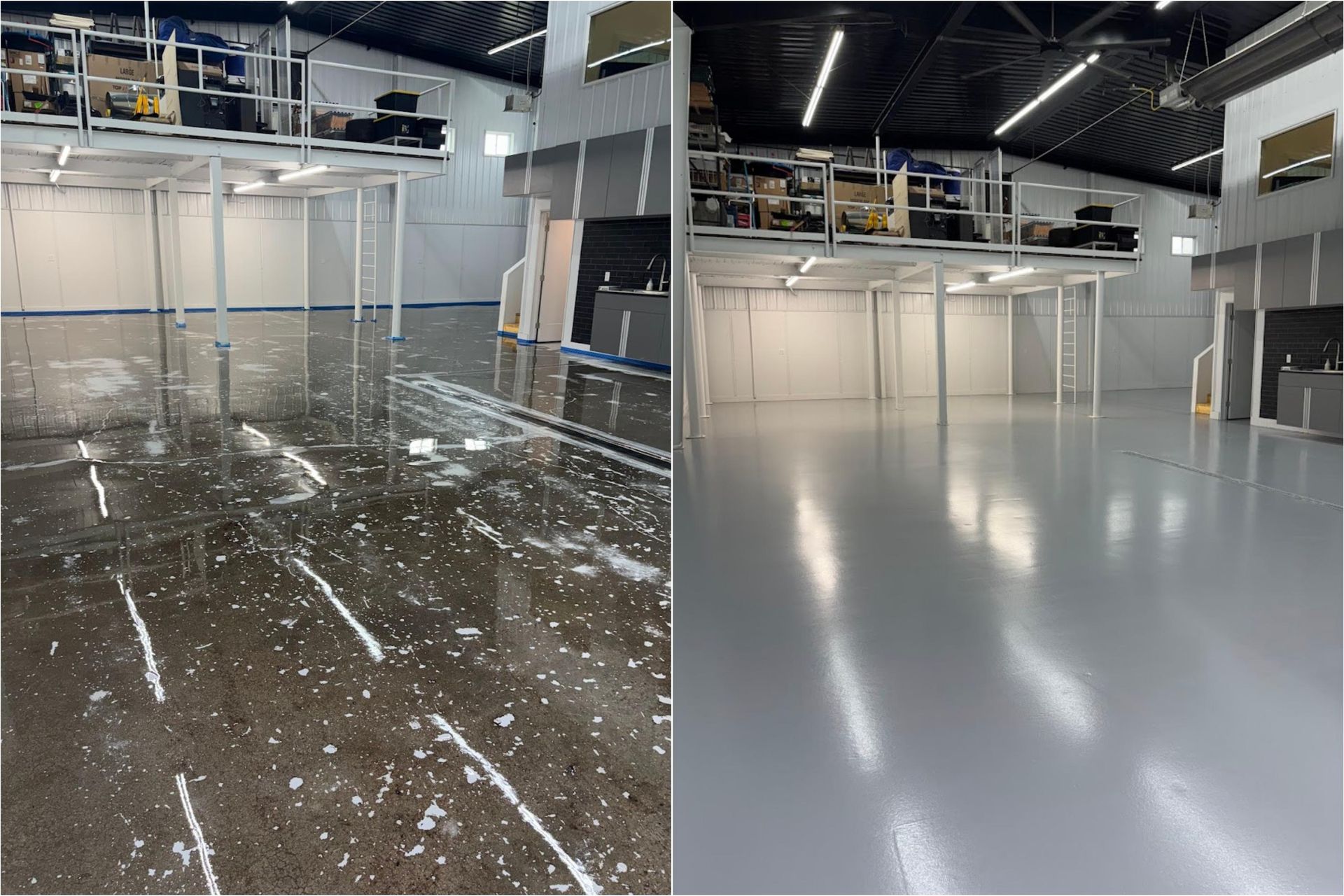 The homeowner is thrilled with his new floor and says the next step is to paint the walls and install cabinets. He is excited to be settled into his new home and we are excited to see his blue Mustang parked on that metallic floor.